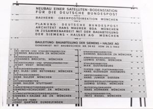 On March 26, 1963, the building permit for the earth station of the Bundespost in Raisting was issued. In December 1964, the construction and assembly work was largely completed and the first test transmissions were started.